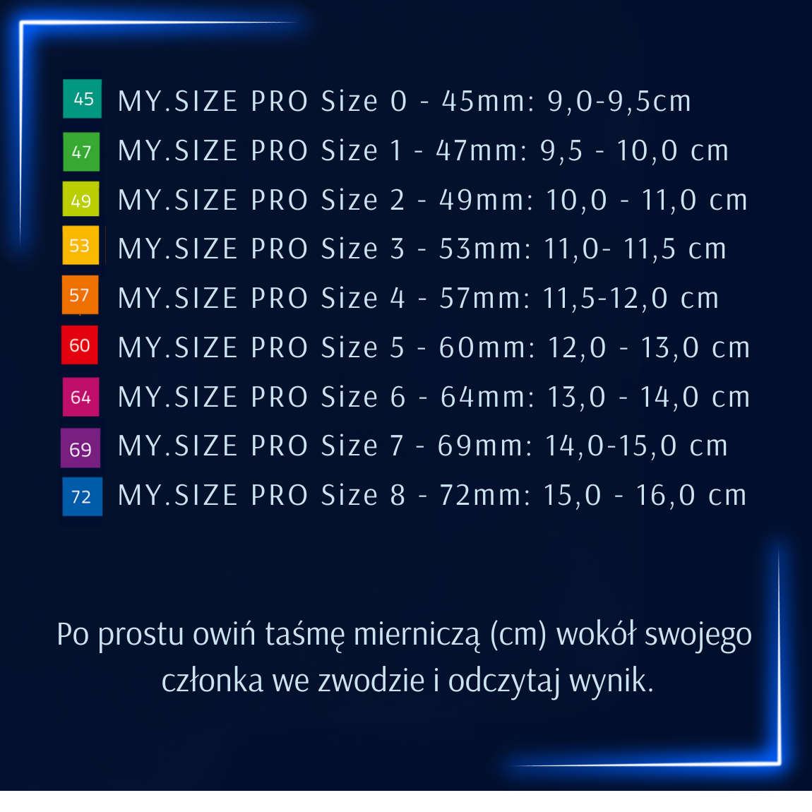 Obwód ma decydujące znaczenie dla doboru odpowiedniego rozmiaru MY.SIZE.PRO Długość nie odgrywa roli przy doborze odpowiedniego rozmiaru prezerwatywy. Wskazówka: Czy chcesz, aby prezerwatywa przylegała mocniej, czy też wolisz ekstremalną czułość? W razie potrzeby dobierz mniejszy lub większy rozmiar prezerwatywy MY.SIZE PRO.