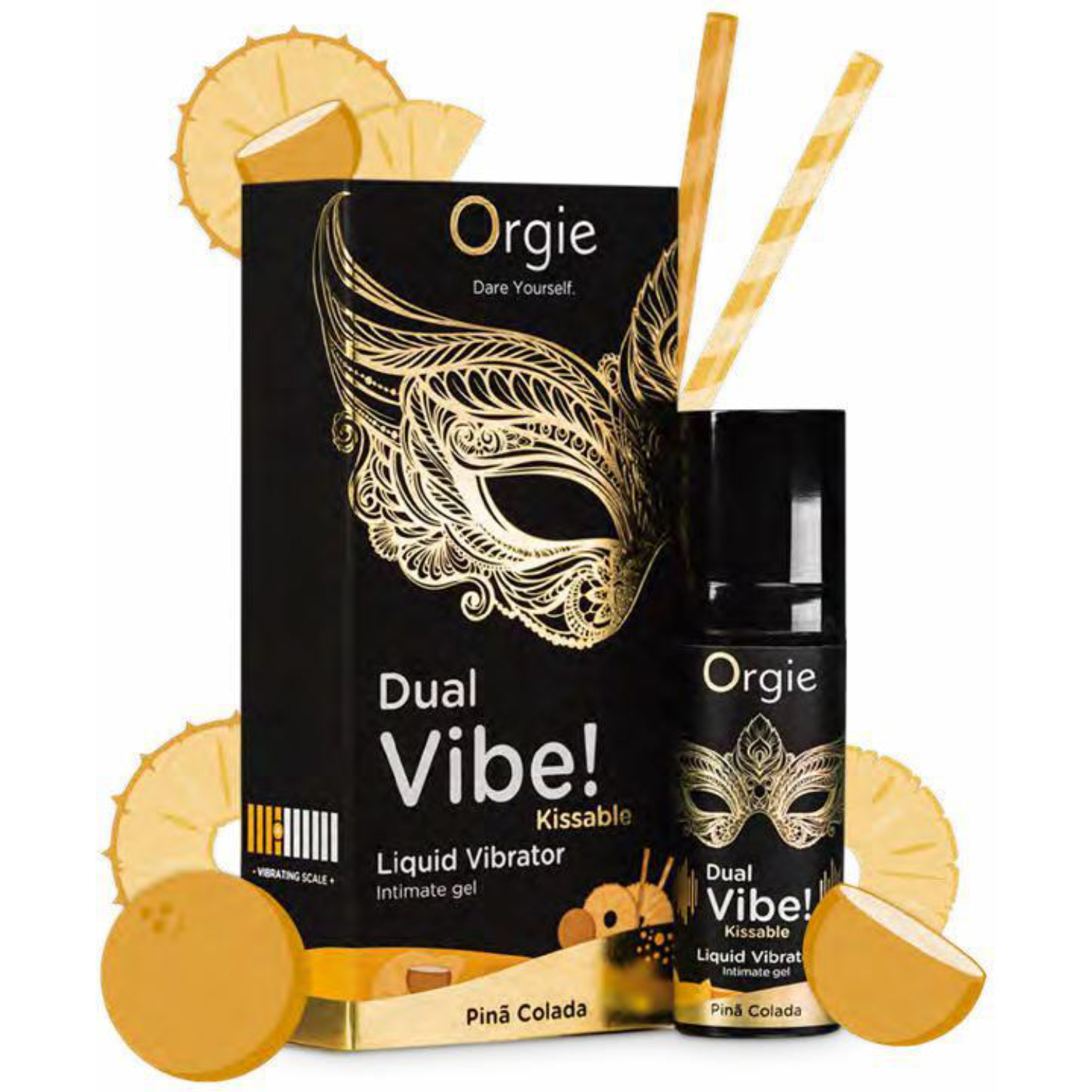 Czerpiąc inspirację z tropikalnego uroku klasycznych koktajli, Dual Vibe! Pinã Colada wnosi odrobinę wyrafinowania do intymnych chwil. Jego starannie opracowany smak koktajlu Pinã Colada został zaprojektowany tak, aby pobudzać kubki smakowe, podczas gdy łagodniejszy, ale bardzo satysfakcjonujący efekt wibracji dodaje dodatkową warstwę podniecenia do seksu oralnego, czyniąc go bardziej komfortowym i przyjemnym.