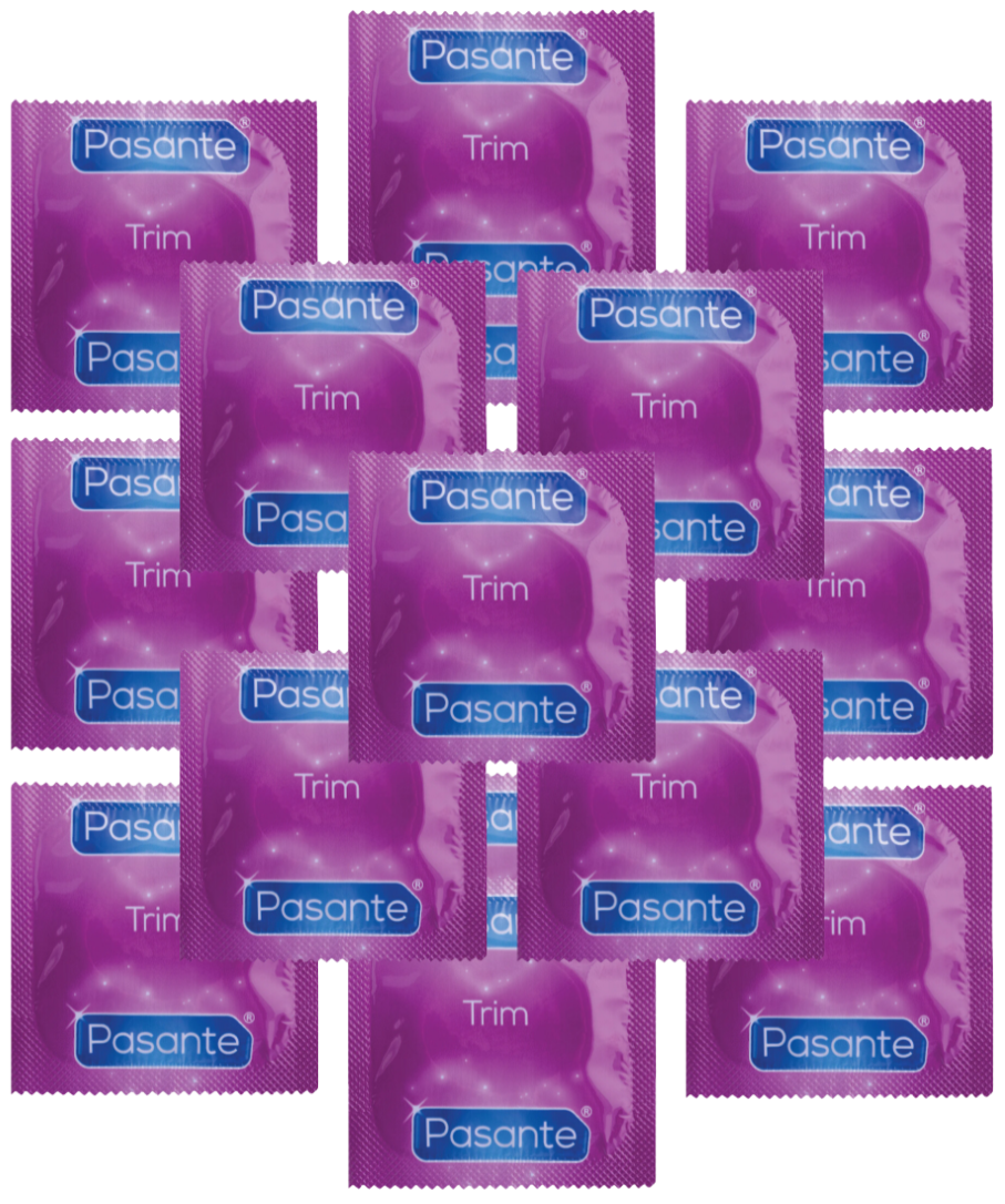 Pasante Trim to ściśle przylegające prezerwatywy, które spowodują zwiększenie uczucia bliskości między wami. Posiadają mniejszą średnicę i długość niż standardowe prezerwatywy. Anatomiczny umożliwia wygodne założenie. Dodatkowo pokryte środkiem nawilżającym. Do stosowania przy stosunku waginalnym oraz analnym. Dla tych, którzy chcą być jak najbliżej siebie.