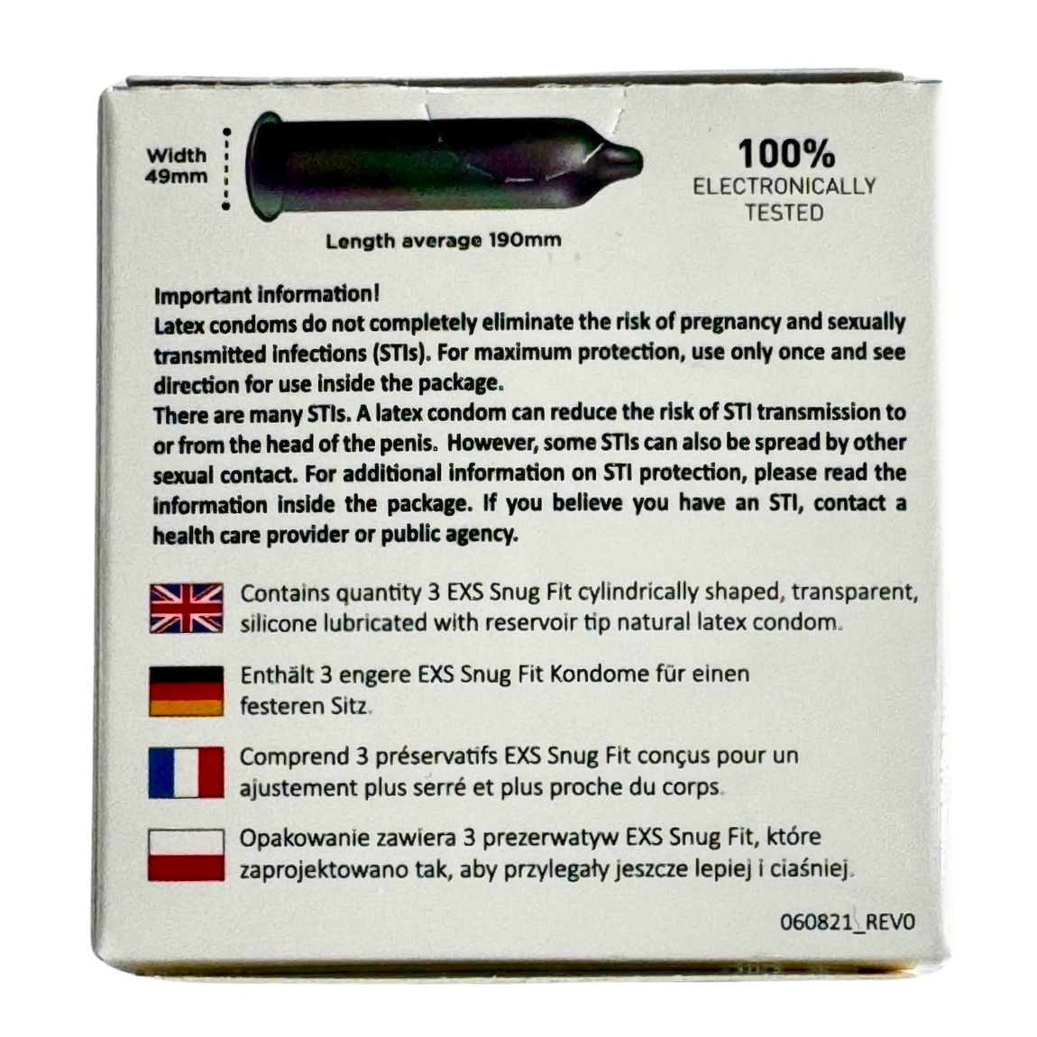 EXS Snug Fit to prezerwatywy stworzone z myślą o mężczyznach, którzy potrzebują mniejszego rozmiaru lub preferują bardziej ścisłe dopasowanie. Dzięki swojej konstrukcji zapewniają pewne trzymanie na miejscu nawet po ejakulacji, co pozwala cieszyć się bezpiecznym seksem bez zakłóceń.